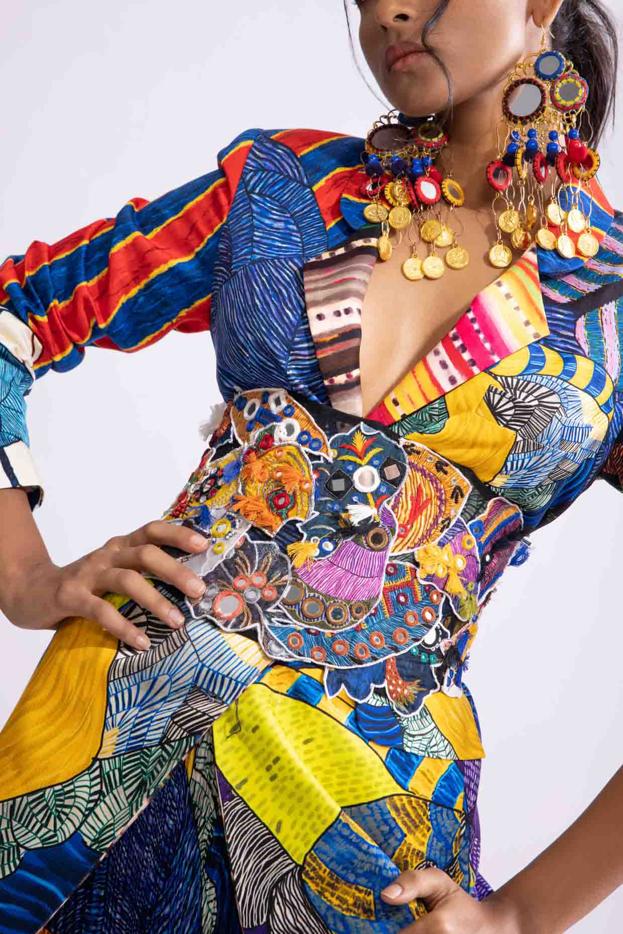 The Monica Skirt is a striking tribal print maxi skirt that effortlessly combines traditional design with contemporary style. Crafted from lightweight chiffon, it offers a soft, flowing drape that moves gracefully with every step. The hand micro pleat detailing adds texture and depth to the fabric, enhancing its overall silhouette and creating a flattering, feminine shape. Featuring a bold multi-colored tribal print, the skirt exudes vibrancy and energy, making it a standout piece. Perfect for both casual and semi-formal occasions, the Monica Skirt pairs well with simple tops or blouses, offering a unique blend of comfort and style.